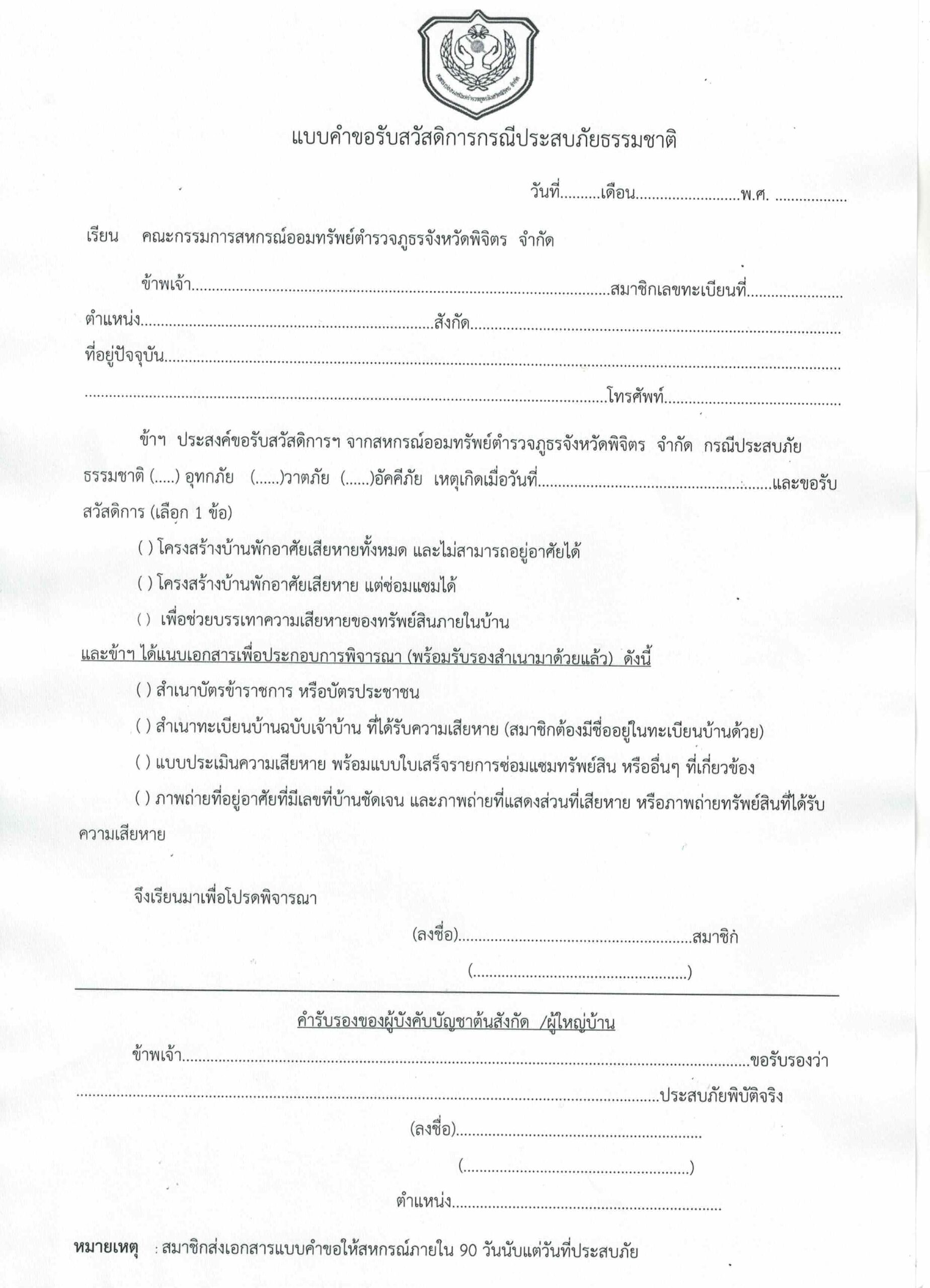 - แบบคำขอรับสวัสดิการกรณีประสบภัยธรรมชาติ