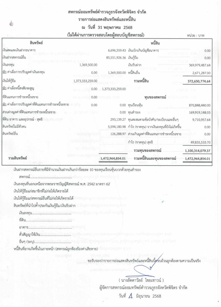 ” ณ วันที่ 31 พฤษภาคม 2568 “