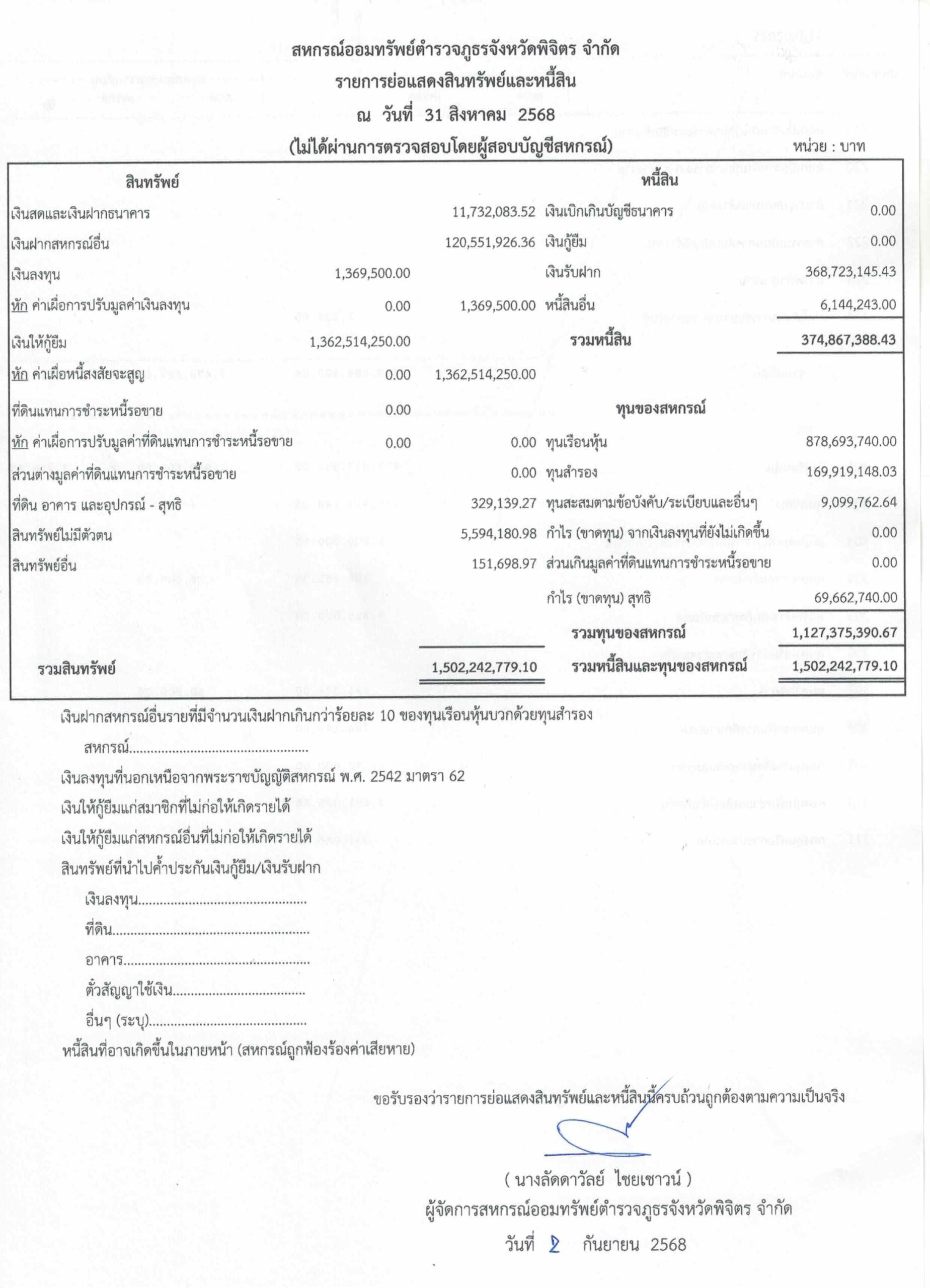 ” ณ วันที่ 31 สิงหาคม 2568 “